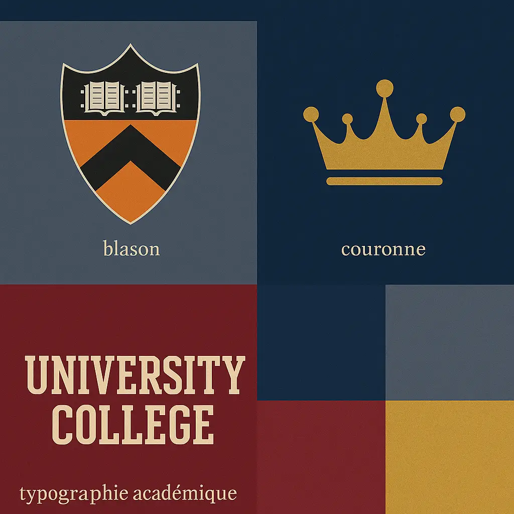 Pour cela, j’ai choisi de m’inspirer des codes visuels des universités américaines, connues pour leur charte graphique forte, leurs emblèmes institutionnels et leur ancrage symbolique. Le logo reprend les éléments traditionnels de ce style : blason, couronne, typographie académique et palette de couleurs sobres et élégantes.