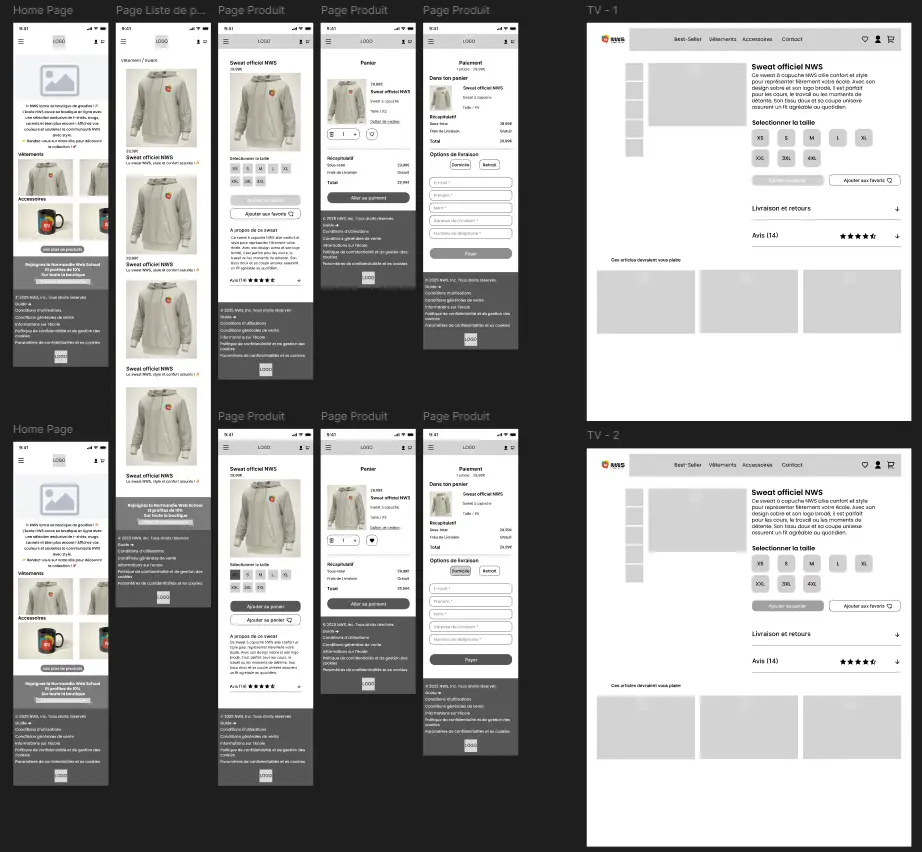 Dans le cadre d’un atelier pédagogique, j’ai été amené à concevoir l’interface d’un site e-commerce dédié à la vente de produits dérivés de la Normandie Web School (NWS). L’objectif principal était de proposer une expérience utilisateur fluide et adaptée aux codes du e-commerce, tout en respectant l’identité visuelle de l’école.