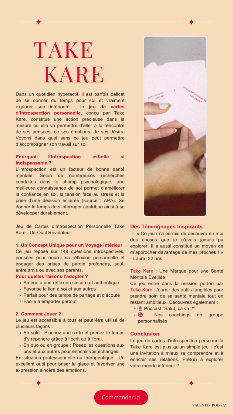 Dans le cadre d’un exercice individuel réalisé pour mon école, j’ai rédigé un article de blog pédagogique destiné à la marque Take Kare. Le but de ce projet était de produire un contenu utile, clair et accessible, en lien direct avec les valeurs et les problématiques portées par la marque.